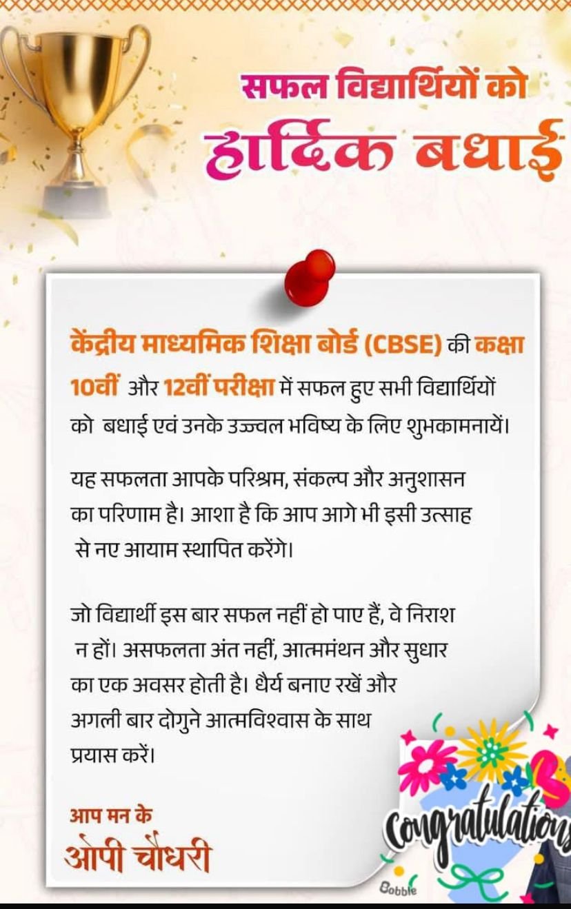 विद्यालय के समस्त डायरेक्टरों ने छात्रों के उज्ज्वल भविष्य की कामना करते हुए विद्यार्थियों को उनके परीक्षा परिणामो के लिए बधाई दी।