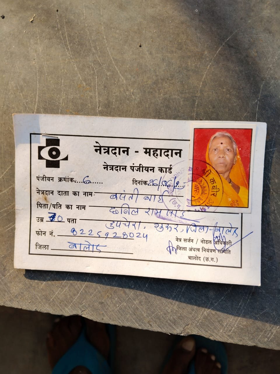 जिला मुख्यचिकित्सा एवं स्वास्थ अधिकारी जे.एल.उइके के निर्देशानुसार एवं खंड चिकित्सा अधिकारी डॉ. सुनील भारती के मार्गदर्शन में नेत्रदान का महान संकल्प हुआ पूरा