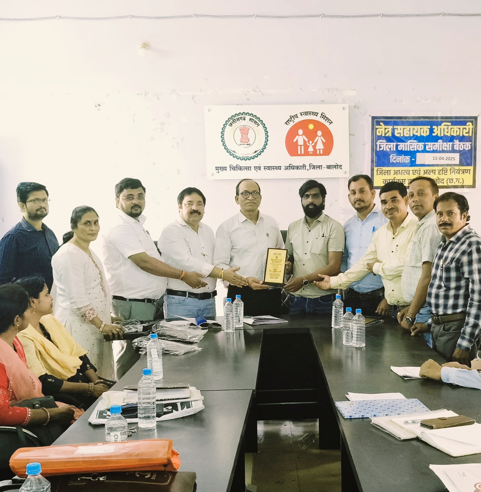 जिस पर मुख्य चिकित्सा एवं स्वास्थ्य अधिकारी डॉक्टर महेश कुमार सूर्यवंशी ने जिले के नेत्र सहायक अधिकारियों को मोमेंटो व प्रशस्ति पत्र देकर सम्मानित किया व आने वाले सत्र 25- 26 में अच्छे कार्य की शुभकामनाएं दी । इस बैठक में जिले के नेत्र सहायक अधिकारी डीगेश देवदास,कुशल साहू, घनश्याम पुरी ,मुकेश साहू,श्याम सुंदर देवांगन, छत्रपाल साहू,दिनेश सिन्हा,जयपाल सिंह, मोकेश हिरवानी, बी एस बारले ,अनिल सोनी ,रोशन प्रजापति,प्रेम साहू,के बी पाल,राकेश देशमुख, नारद साहू,सी पी देवांगन,धर्मेंद्र देशमुख, टकेस्वरी देवांगन,सोनल दीवान,कोमल देवांगन,रवि वर्मा, उपस्थित थे।