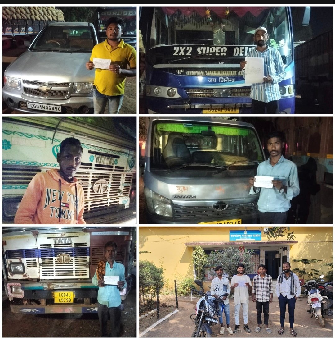 जिला पुलिस अधीक्षक योगेश पटेल के निर्देशानुसार यातायात  पुलिस बालोद द्वारा विशेष अभियान चलाकर विगत डेढ़ माह में शराब सेवन कर वाहन चलाने वाले 94 वाहन चालकों पर की गई कार्यवाही,  न्यायालय द्वारा 9,68,000रू. हुआ अर्थदण्ड। यातायात नियमों के उल्लंघन करने वालें 2569 वाहन चालकों पर कार्यवाही कर किया गया 15,67,400 रुपये का समन शुल्क की कार्यवाही ,  शराबी वाहन चालकों का 06 माह के लिए किया गया लायसेंस निलंबित।  दुसरी बार शराब पीकर वाहन चलाने पर हमेशा के लिए किया जाएंगा लायसेंस निरस्त।  जिला  उपपुलिस अधीक्षक मोनिका ठाकुर  के मार्गदर्शन यातायात प्रभारी रविशंकर पांडे  बालोद द्वारा शराब सेवन कर वाहन नहीं चलाने, बिना हेलमेट दोपहिया वाहन नहीं चलाने की लगातार की जा रही अपील।