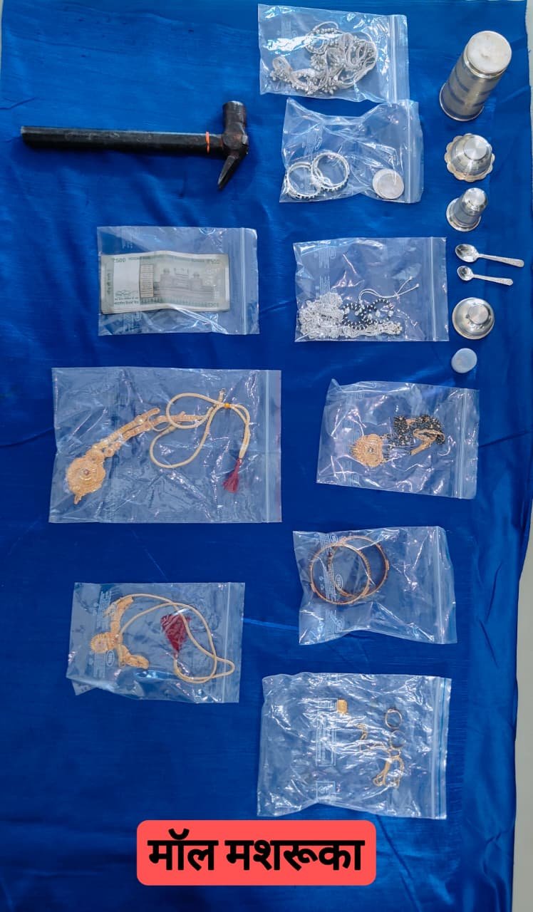आरोपी के कब्जे से सोने-चांदी के जेवरात, 4 हजार रुपये नकद, चोरी में प्रयुक्त मोटरसाइकिल और लोहे की हथौड़ी समेत कुल 8 लाख 52 हजार 450 रुपये की संपत्ति की जब्त
