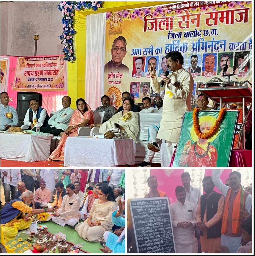 इस अवसर पर मुख्य अतिथि भारतीय जनता पार्टी के प्रदेश महामंत्री यशवंत जैन, कार्यक्रम की अध्यक्षता भाजपा जिला अध्यक्ष चमन देशमुख ने की, इस अवसर पर यशवंत जैन ने समाज को संबोधित करते हुए भवन के राशि स्वीकृत करने के लिए माननीय मुख्यमंत्री का धन्यवाद किया, एवं समाज को शिक्षा एवं संगठित होकर आपसी सौहार्द के साथ काम करने का आह्वान किया, इस अवसर पर यशवंत जैन ने समाज को धर्मांतरण की गतिविधियों से सचेत रहने आह्वान किया, इस अवसर पर छत्तीसगढ़ फिल्म विकास निगम के अध्यक्ष मोना सेन, समाज के प्रदेश अध्यक्ष पुनीत सेन, जिला अध्यक्ष संतोष कौशिक, जिला पंचायत के उपाध्यक्ष तोमन साहू, नगर पालिका की उपाध्यक्ष कमलेश सोनी सहित, सेन नाई समाज के प्रदेश एवं पूरे बालोद जिले से आए सामाजिक लोग बड़ी संख्या में उपस्थित रहे।