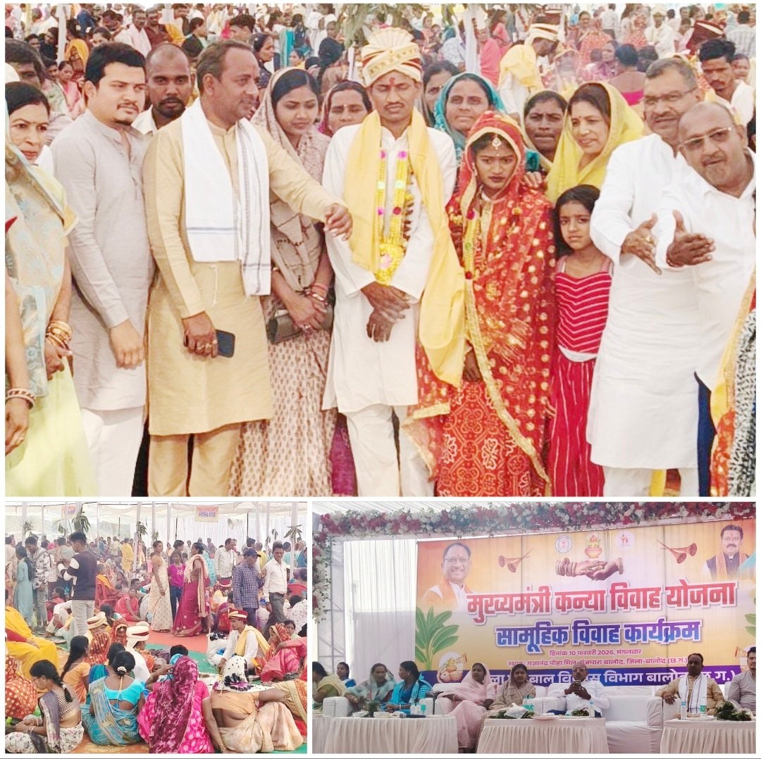 बालोद :- बालोद जिला मुख्यालय के गंजपारा स्थित पोहा मिल में मुख्यमंत्री कन्या विवाह योजना के तहत जिला स्तरीय सामूहिक विवाह कार्यक्रम में बालोद जिले के कुल 163 जोड़े वर-वधुओं का रीति-रिवाज के अनुसार विवाह संपन्न कराया गया।