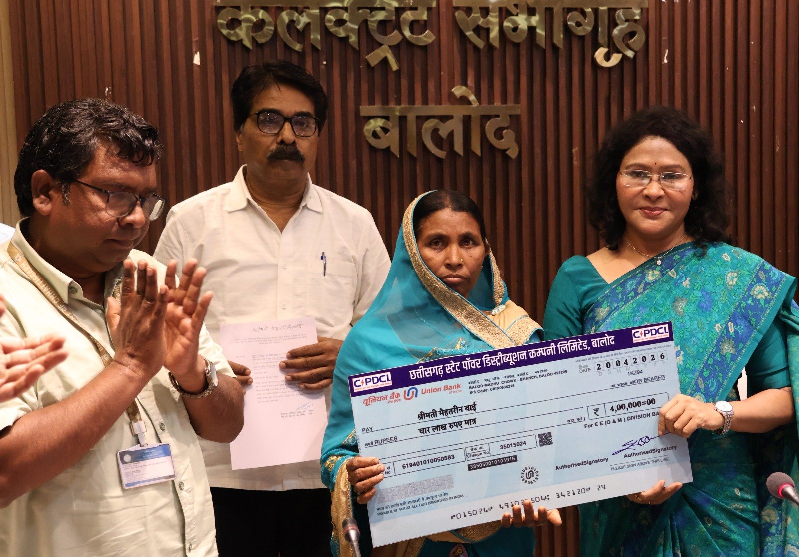 उल्लेखनीय है कि छत्तीसगढ़ विद्युत वितरण कंपनी लिमिटेड द्वारा उक्त दोनों व्यक्तियों के विद्युत दुर्घटना में मृत्यु हो जाने पर उनके उत्तराधिकारियों के लिए 04-04 लाख रूपये की राशि स्वीकृत की गई है।