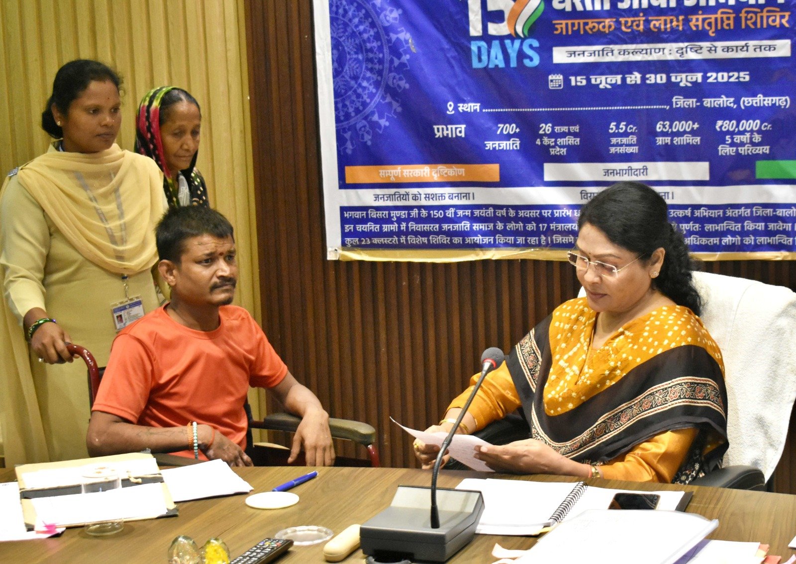 उनके पिता ने बताया कि उनका 10 वर्षीय पुत्र ओजेश दोनों पैर से दिव्यांग है, उसे चलने फिरने में समस्या होती है अतः उसे व्हीलचेयर प्रदान किया जाए। कलेक्टर श्रीमती मिश्रा ने तत्काल समाज कल्याण विभाग के अधिकारी को तलब कर ओजेश साहू को व्हीलचेयर प्रदान करने के निर्देश दिए।