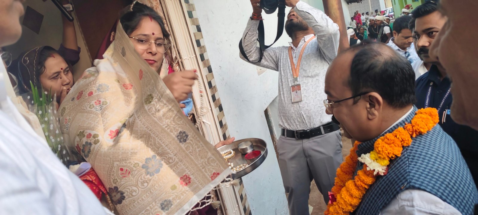 मंत्री अरूण साव ने कुसुम शर्मा के घर स्वल्पाहार ग्रहण किया। जिसके बाद कुसुम शर्मा के परिवार ने मंत्री जी को स्मृति चिन्ह भेंट किया।