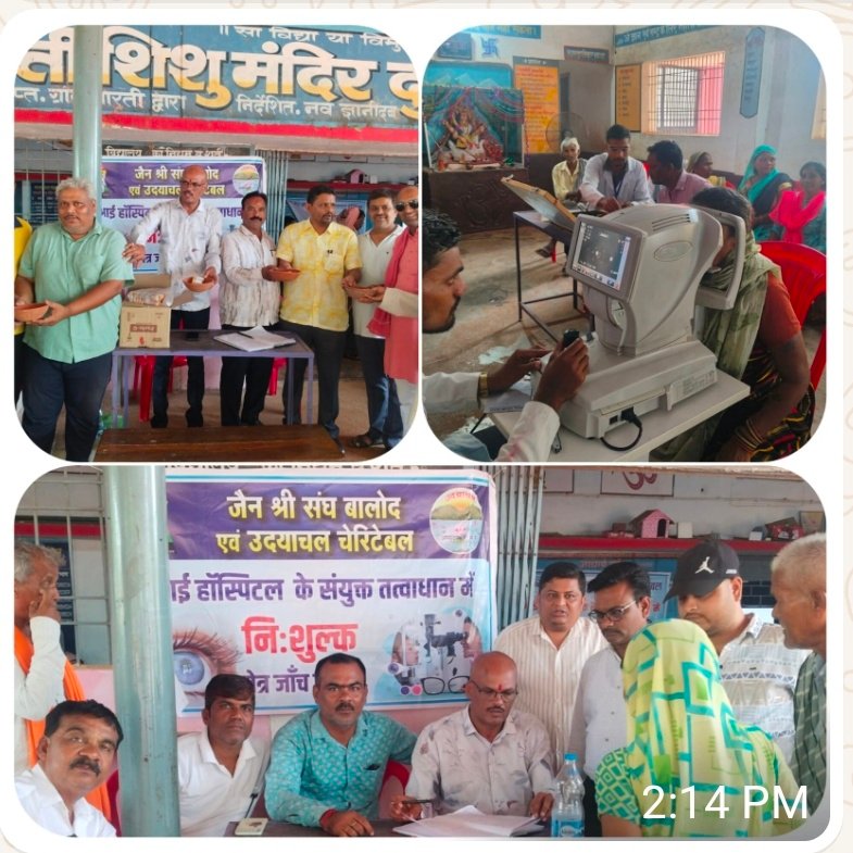 बालोद :- जैन श्री संघ बालोद एवं उदयाचल आई हॉस्पिटल राजनांदगाँव के संयुक्त प्रयास से बालोद जिला को मोतियाबिंद जिला बनाने के इस वृहद मुहिम में ग्रामझलमला गंगा मैया मंदिर प्रांगण तथा ग्राम पंचायत दुधली शिशु मंदिर में दो दिवसीय निःशुल्क नेत्र जांच शिविर का आयोजन किया गया।