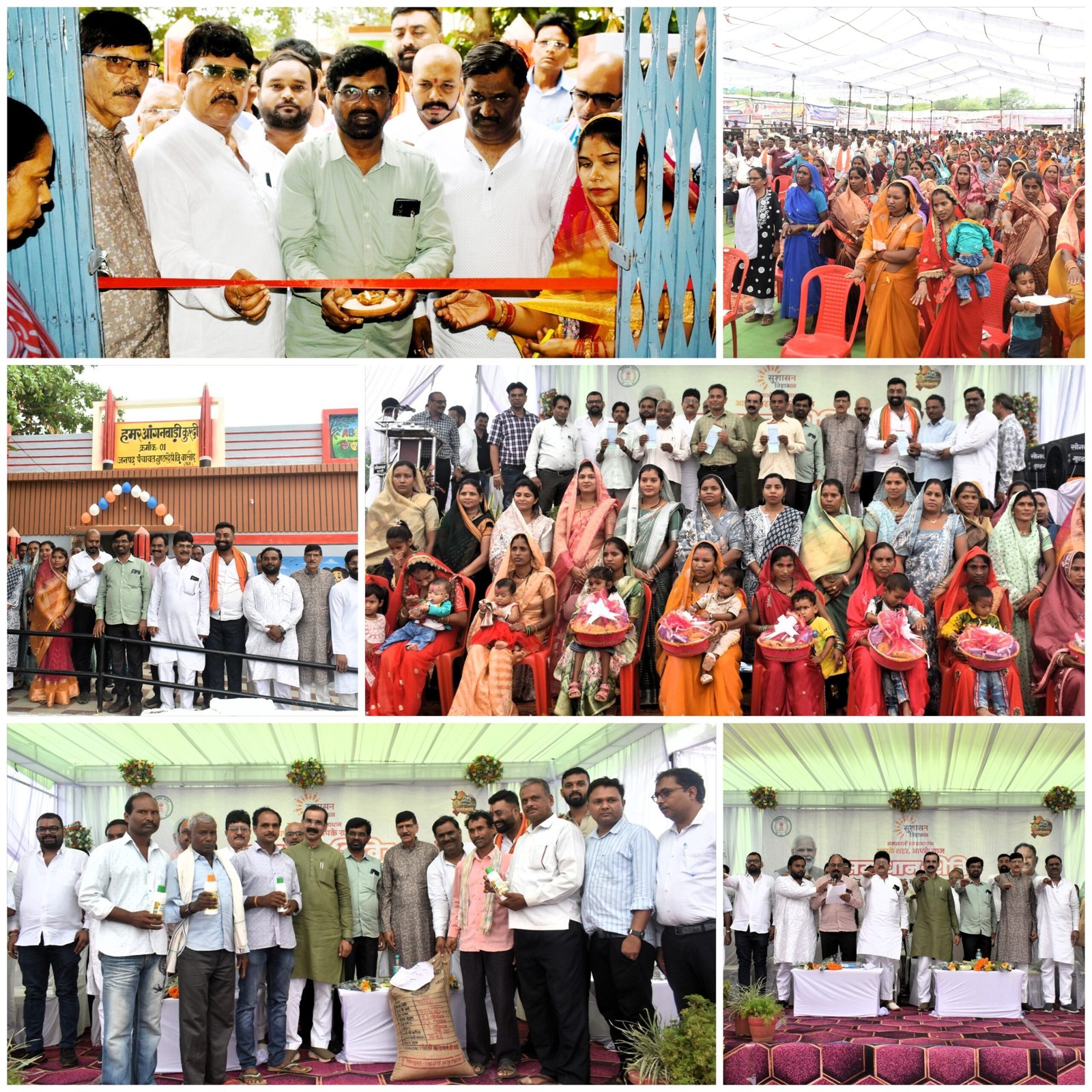 उल्लेखनीय है कि सुशासन तिहार के पहले चरण के अंतर्गत ग्राम कुरदी कलस्टर में शामिल ग्राम पंचायतों के लोगों के द्वारा प्रस्तुत किए गए 3880 एवं ग्राम धनोरा कलस्टर में 6270 तथा नगर पंचायत पलारी में शामिल लोगों के द्वारा विभिन्न विभागों से संबंधित कुल 1640 आवेदनों का परीक्षण के उपरांत संबंधित विभाग के अधिकारियों के द्वारा प्राप्त सभी आवेदनों का निराकरण सुनिश्चित किया गया। आज आयोेजित शिविरों में हितग्राहियों को सुशासन तिहार के दौरान बनाए गए उनका राशन कार्ड, श्रम कार्ड, मनरेगा जाॅब कार्ड, प्रधानमंत्री आवास योजना की स्वीकृति पत्र, किसानों को किसान क्रेडिट कार्ड के अलावा उन्नत किस्म के धान बीज, कीटनाशक दवाई, खाद बीज के वितरण के अलावा समाज कल्याण विभाग द्वारा वृद्धजनों को छड़ी एवं श्रवण यंत्र आदि के अलावा मछली पालन विभाग द्वारा हितग्राहियों को आईस बाॅक्स एवं मछली जाल प्रदान किया गया। इसके अलावा शिविर में अनेक हितग्राहीमूलक योजनाओं के अंतर्गत हितग्राहियों को लाभान्वित भी किया गया। इस दौरान शिविर में उपस्थित अतिथियों के द्वारा गर्भवती माताओं को सुपोषण किट प्रदान कर उनके गोद भराई रस्म और नन्हें-मुन्हे बच्चों को स्वादिष्ट खीर खिलाकर उनका अन्नप्रासन संस्कार को भी पूरा किया गया। इस अवसर पर अतिथियों ने ’एक पेड़ माँ के नाम’ अभियान के अंतर्गत कार्यक्रम स्थल में पौधरोपण भी किया। इसके साथ ही अतिथियों ने जिले में लगातार घट रहे भूजल स्तर के मद्देनजर जल संरक्षण के उपाय तथा इनके संरक्षण एवं संवर्धन के कार्य में अपनी अनिवार्य भागीदारी सुनिश्चित करने हेतु उपस्थित लोगों को शपथ भी दिलाई। इस अवसर पर वरिष्ठ जनप्रतिनिधियों ने गुण्डरदेही विकासखण्ड के ग्राम कुरदी में आंगनबाड़ी केन्द्र क्रमांक 01 के नवीन भवन का लोकार्पण भी किया।
