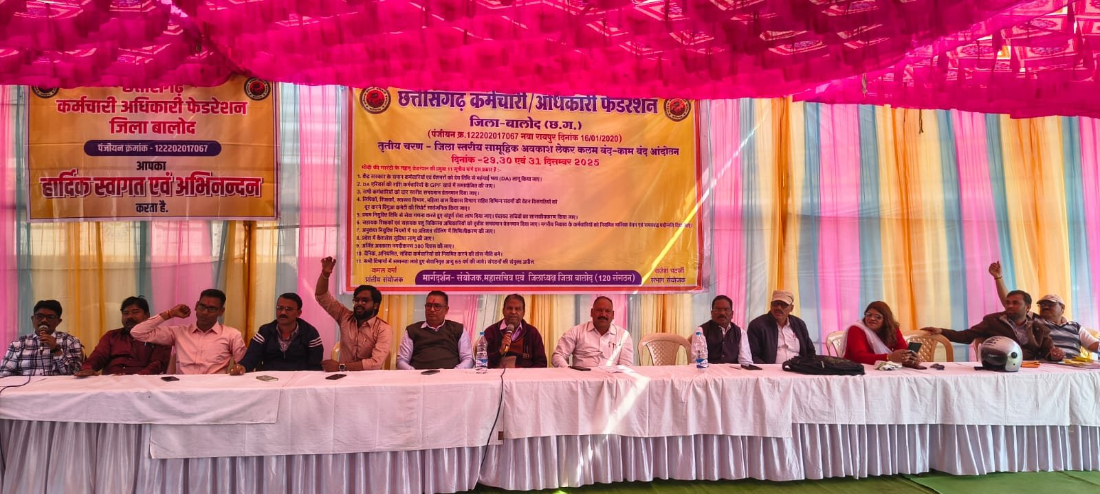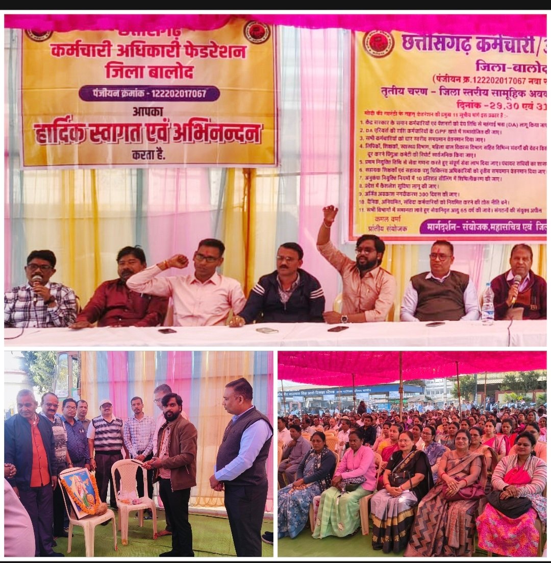 बालोद :- छत्तीसगढ़ कर्मचारी अधिकारी फेडरेशन बालोद ने तीन दिवसीय आंदोलन का किया गया आगाज जिसमें प्रथम दिवस में कर्मचारियों में शासन के प्रति फूटा गुस्सा कर्मचारियों में नाराज व्यक्त किया गया ।