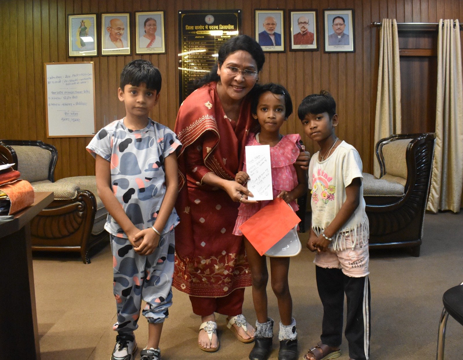 नन्हीं बालिका अल्फिया ने अपने आने वाले जन्मदिवस के अवसर पर न्योता भोज हेतु कलेक्टर श्रीमती दिव्या उमेश मिश्रा को दिया आमंत्रण