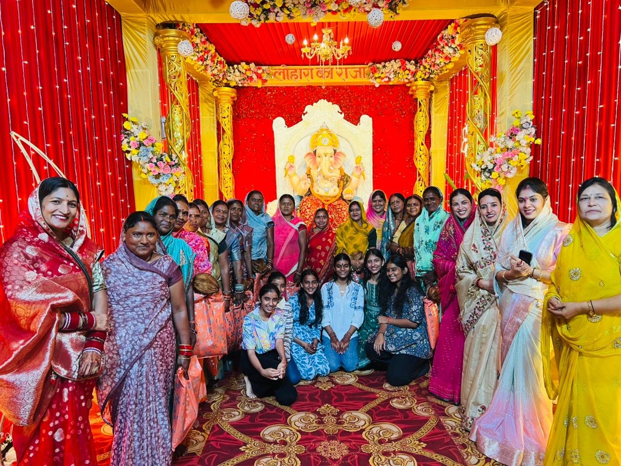 पंडाल में गणेश पूजन में नगर के युवाओं द्वारा प्रतिदिन अलग-अलग समूहों द्वारा आरती-पूजन कराकर नगर मे एक अच्छा संदेश दिया जा रहा है। इसी क्रम में विगत शाम को सम्पन्न आरती -पूजन में नगर को स्वच्छ एवं सुंदर बनाने में मुख्य भूमिका निभाने वाली स्वच्छता समूह की महिलाओं द्वारा महा आरती का आयोजन किया गया।साथ ही इस अवसर पर समिति द्वारा उन्हें श्रीफल तिलक लगाकर सम्मानित कर सम्मान रूप में साड़ी सप्रेम भेंट कीया गया एवं समिति के बच्चों ने उनके इस कार्य के लिए उन्हें साधुवाद भी दिया है।