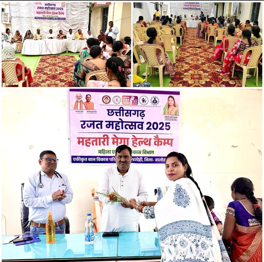 बालोद, :- छत्तीसगढ़ रजत महोत्सव के अवसर पर आज एकीकृत बाल विकास परियोजना गुण्डरदेही के अंतर्गत महतारी मेगा हेल्थ कैंप का आयोजन किया गया।