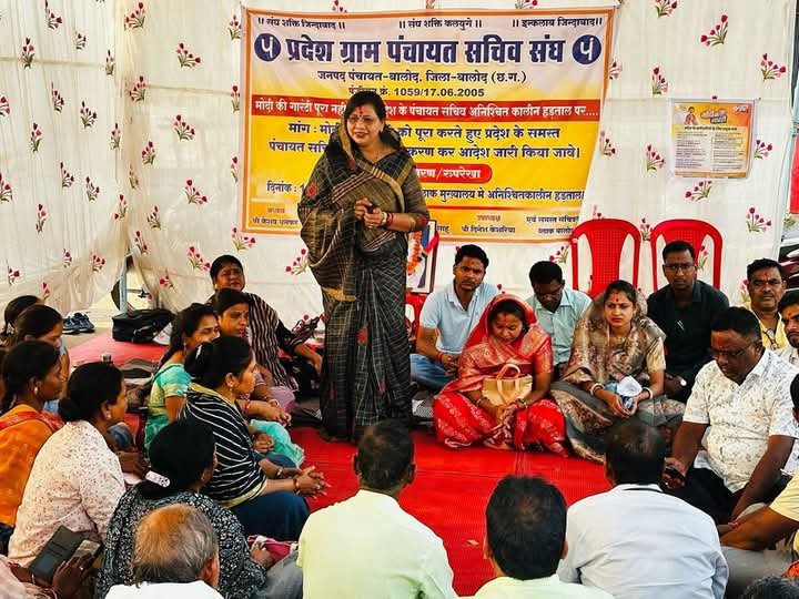बालोद :- जिला मुख्यालय में पंचायत सचिवों द्वारा अनिश्चितकालीन धरना प्रदर्शन में विधायक संगीता सिन्हा सचिवों का समर्थन करने पहुंची ।इस अवसर पर विधायक संगीता सिन्हा जी ने कहा छत्तीसगढ़ विधानसभा चुनाव के दौरान भारतीय जनता पार्टी ने मोदी की गारंटी के तहत अपने संकल्प पत्र में पंचायत सचिवों को शासकीय करण करने की बात कही थी!
