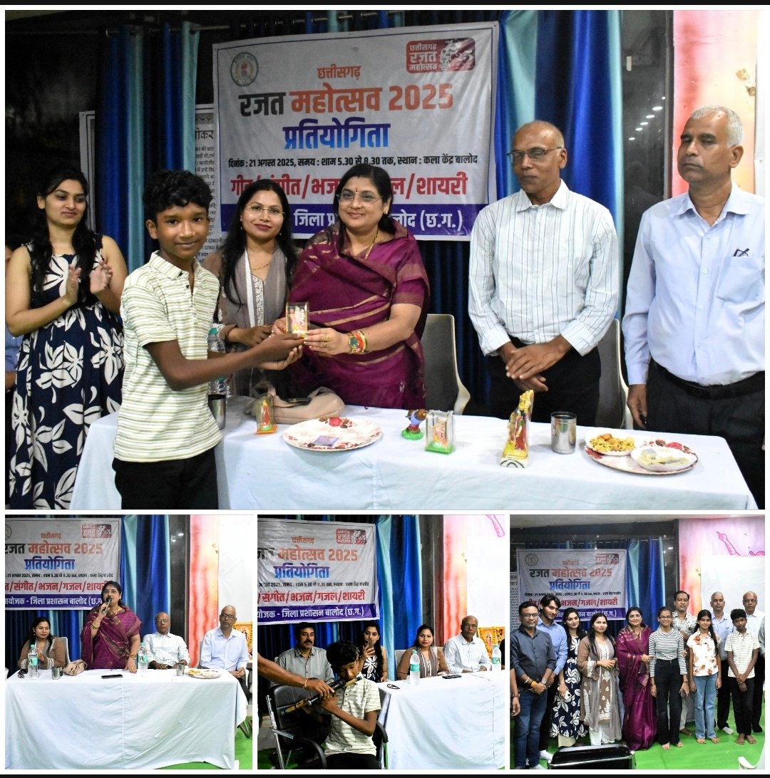 बालोद, :- 22 अगस्त छत्तीसगढ़ रजत महोत्सव के उपलक्ष्य में जिला मुख्यालय बालोद स्थित कला केंद्र में एक शानदार संगीत प्रतियोगिता का आयोजन किया गया।
