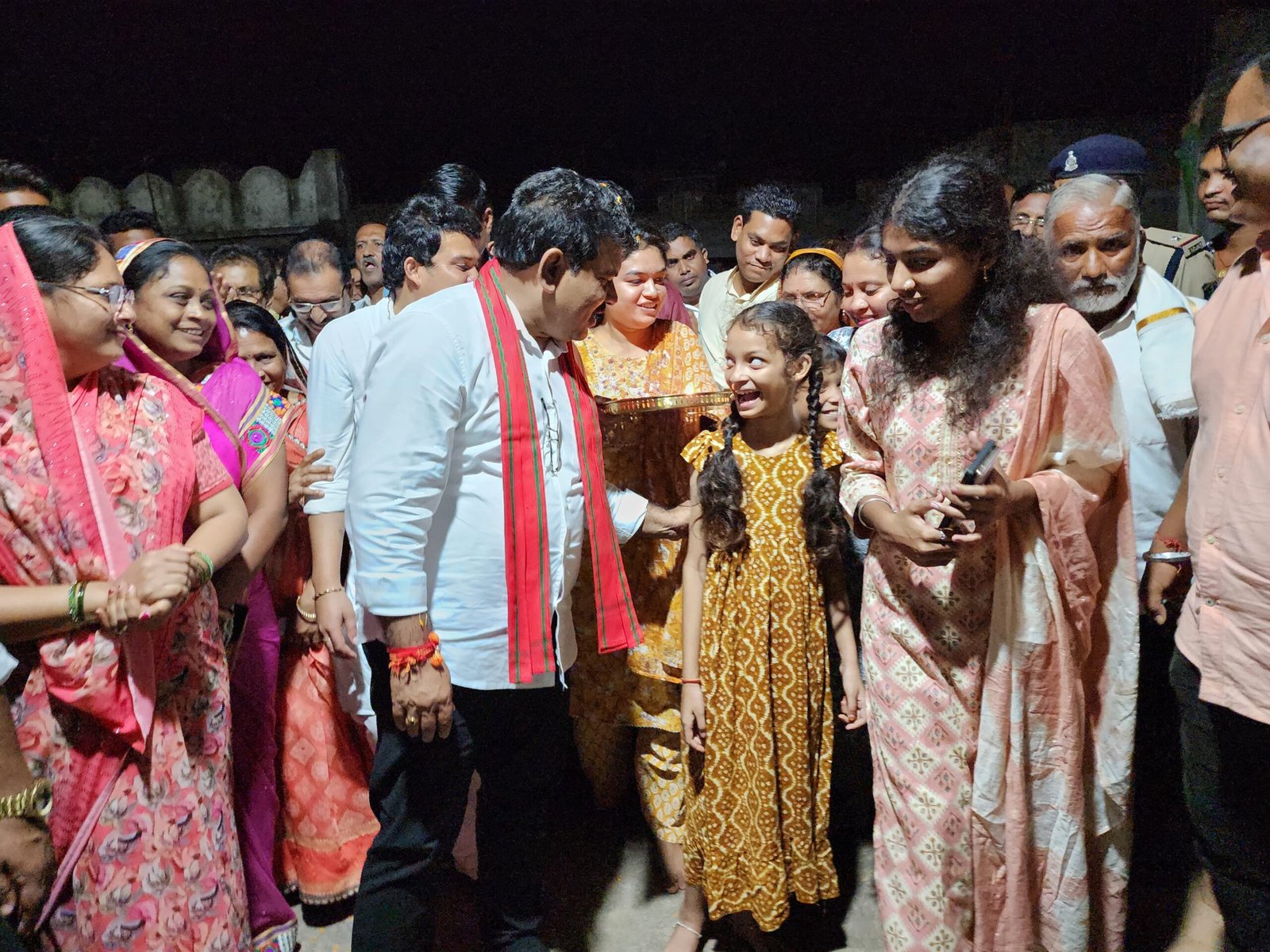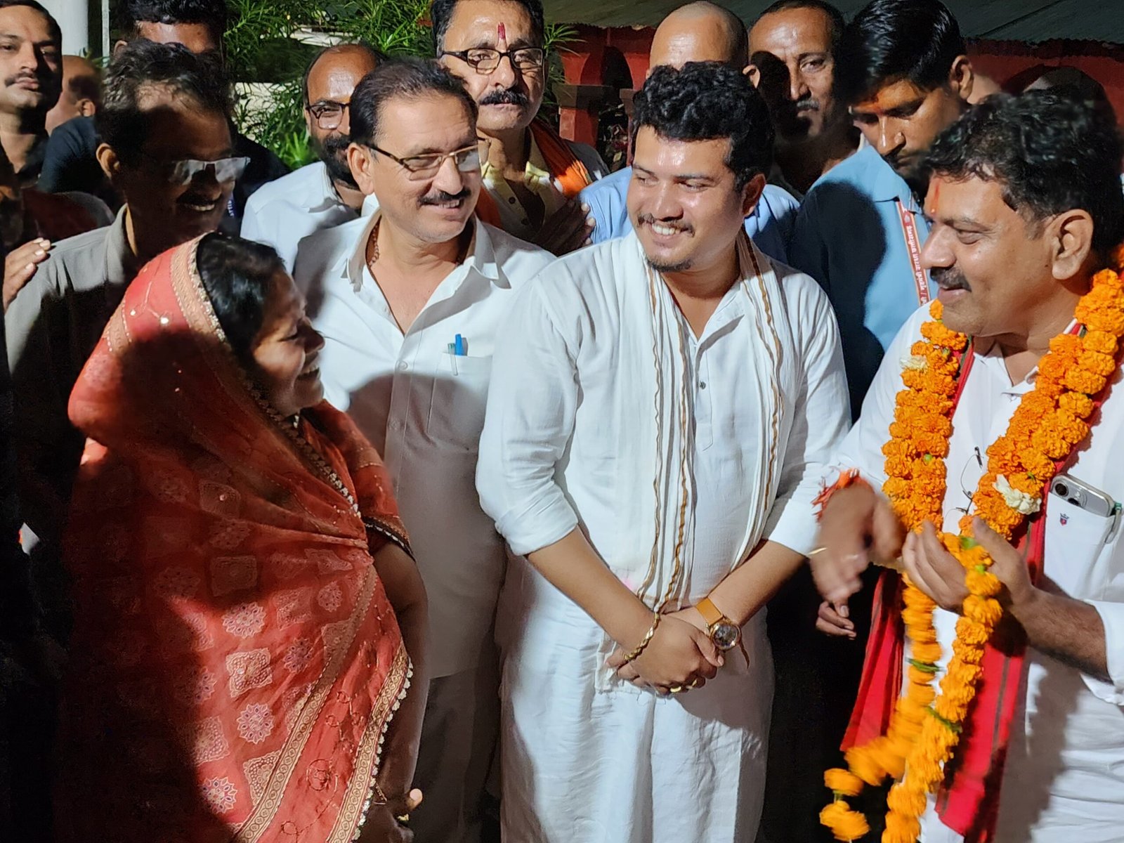राज परिवार और कार्यकर्ताओं ने आतिशबाजी के साथ किया स्वागत