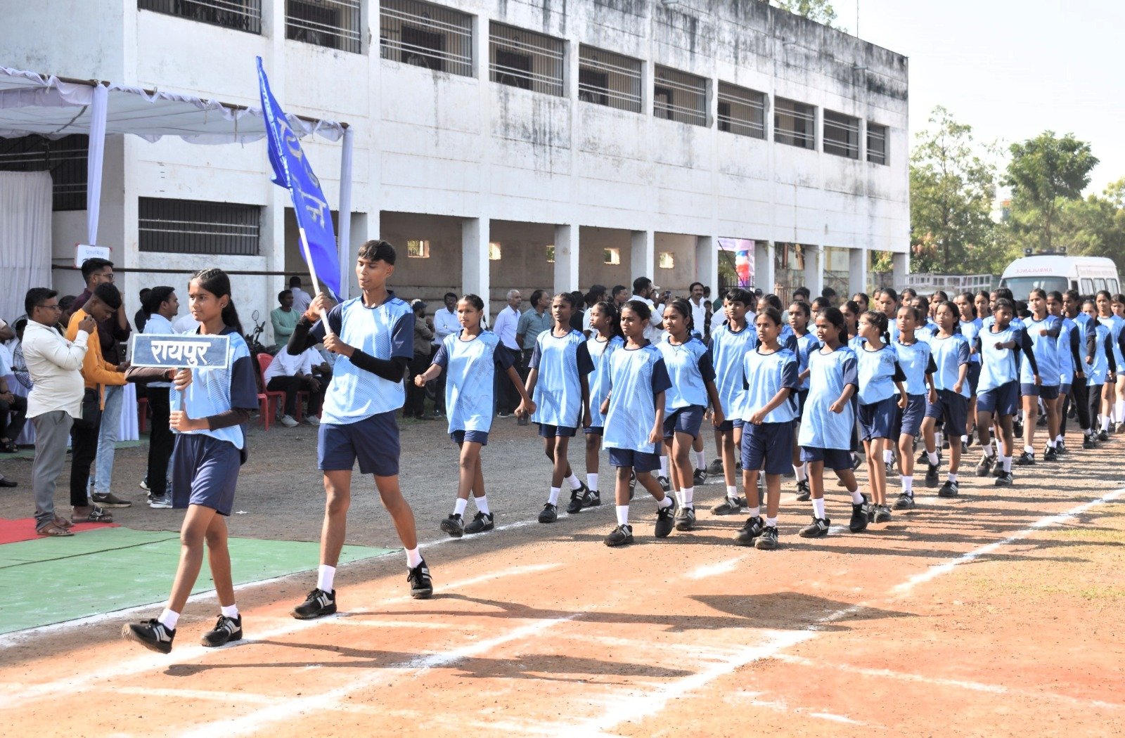 इस दौरान सभी पांचों जोन के प्रतिभागी खिलाड़ियों के द्वारा आकर्षक मार्चपास्ट कर अतिथियों को सलामी भी दी गई।