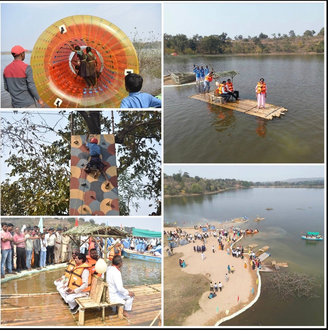 स्थानीय विधायक, संगीता सिन्हा जिला पंचायत अध्यक्ष, तारणी चंद्रकार उपाध्यक्ष तोमन साहू सहित अन्य वरिष्ठ जनप्रतिनिधियों के अलावा कलेक्टर, डीएफओ एवं अन्य वरिष्ठ अधिकारियों ने बैम्बू राफ्टिंग में सवार होकर जलाशय का किया भ्रमण