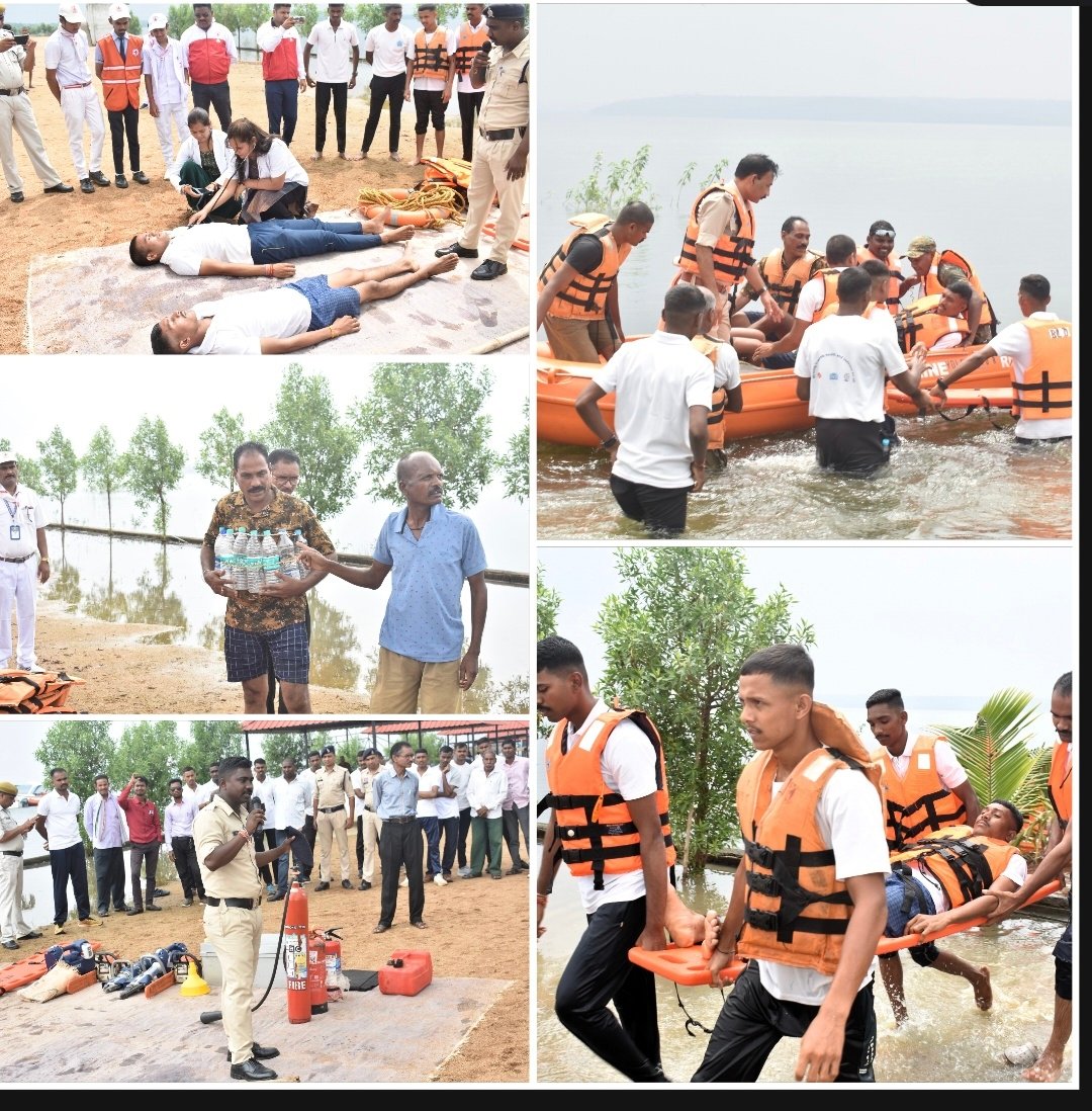 बालोद, :- 25 सितम्बर जिले में बाढ़ आपदा से निपटने की तैयारियों को परखने और लोगों को जागरूक करने के उद्देश्य से जिला आपदा प्रबंधन प्राधिकरण बालोद द्वारा सिवनी स्थित तांदुला जलाशय एवं गंगा मैया मंदिर के सामने नहर पर एक प्रभावी मॉक ड्रिल का आयोजन किया गया। इस दौरान स्थानीय लोगों एवं रेडक्राॅस के बच्चों को बाढ़ की स्थिति में अपनी और दूसरों की जान बचाने के महत्वपूर्ण उपायों की विस्तृत जानकारी दी गई। इस दौरान बचाव दल के द्वारा मॉक ड्रिल के दौरान उपस्थित लोगों, स्कूली बच्चों को सीमित संसाधनों का उपयोग करके बाढ़ के पानी में सुरक्षित रहने और बचाव करने के कई सरल और कारगर तरीके सिखाए गए। इस दौरान बचाव दल के द्वारा पुराने पीपे और खाली प्लास्टिक बोतलों को जोड़कर अस्थायी तैरने वाले उपकरण (फ्लोटिंग डिवाइस) बनाने और उनका उपयोग करने के संबंध में जानकारी दी गई। इसी तरह जलाशयों में लाइफ जैकेट को सही तरीके से पहनने और उसका इस्तेमाल करने का प्रदर्शन भी किया गया। इस दौरान माॅक ड्रिल का मुख्य आकर्षण तांदुला जलाशय में बाढ़ के पानी में फंसे हुए मछुवारों एवं किसानों को बेहोशी की हालत में निकालने का मॉक प्रदर्शन रहा। जिसमें बचाव दल ने पूरी तत्परता के साथ पीड़ितों को नदी से सुरक्षित बाहर निकाला। जिसके बाद, बचाव दल के सदस्यों ने बेहोश लोगों को सीपीआर (कार्डियोपल्मोनरी रिससिटेशन) दिया और उनका प्राथमिक उपचार किया। प्राथमिक उपचार के पश्चात् पीड़ितों को इलाज के लिए एंबुलेंस के माध्यम से अस्पताल रिफर करने का सफल अभ्यास किया गया। उल्लेखनीय है कि इस मॉक ड्रिल का उद्देश्य बाढ़ आपदा की स्थिति में अपने आप को और दूसरों को बचाने के प्रयास में किए जाने वाले उपायों के संबंध में जानकारी प्रदान करना है। इस दौरान अपर कलेक्टर श्री चंद्रकांत कौशिक, श्री नूतन कंवर, श्री अजय किशोर लकरा, अतिरिक्त पुलिस अधीक्षक श्रीमती मोनिका ठाकुर, आपदा प्रबंधन की टीम, छात्र-छात्राओं के अलावा आम नागरिक उपस्थित थे।