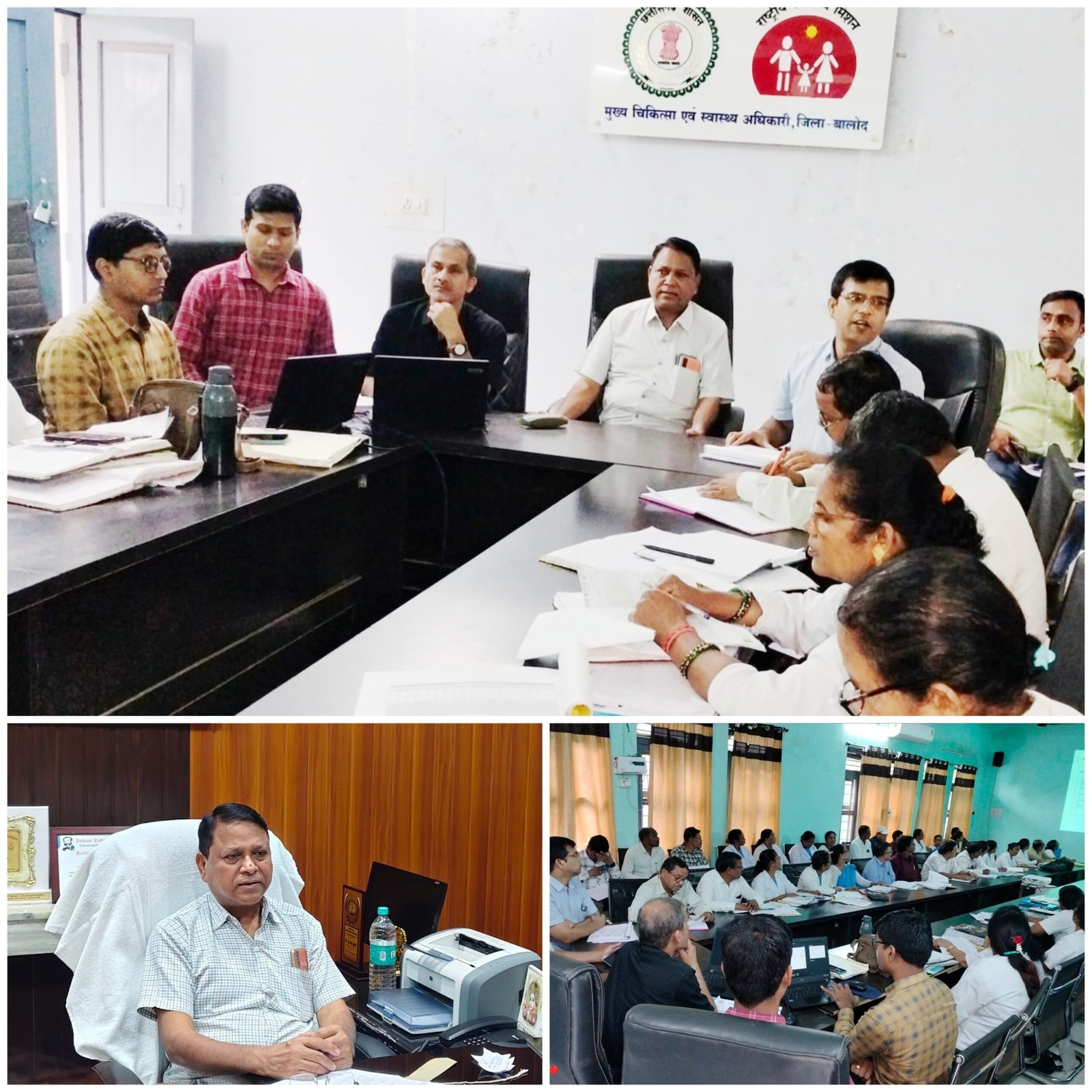 जिले के मुख्य चिकित्सा एवं स्वास्थ्य अधिकारी, डॉ. जे.एल. उइके की अध्यक्षता में स्वास्थ्य एवं परिवार कल्याण विभाग बालोद के राष्ट्रीय कार्यक्रमों लिए समीक्षा बैठक