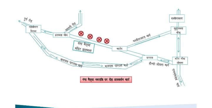 यातायात पुलिस विभाग द्वारा जिले के सबसे बडी धार्मिक स्थल गंगा मैय्या मंदिर में चैत्र नवरात्रि पर्व के दौरान झलमला से गुजरने वाले बड़ी माल वाहक वाहनों को 30 मार्च 06 अप्रैल तक मुख्य मार्ग को किया परिवर्तित दिशा निर्देश जारी