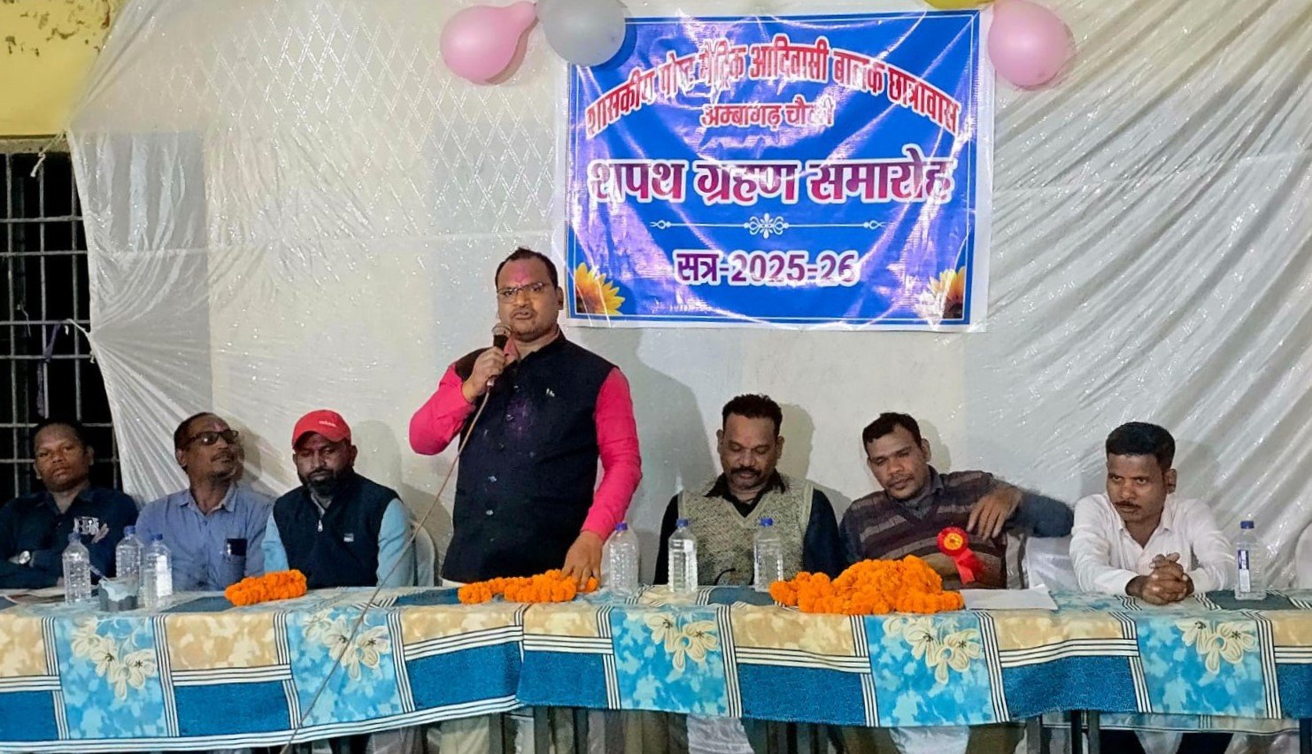 कार्यक्रम की अध्यक्षता अनुसूचित जनजाति शासकीय सेवक संघ के जिला अध्यक्ष एवं छात्रावास के भूतपूर्व छात्र श्री अरविंद गोटे ने किया। समारोह में कार्यक्रम के संरक्षक श्री भूपेन्द्र मण्डावी के अलावा विशेष अतिथि के रूप में विद्याभूषण उपारे, श्री नंदकिशोर अमरिया, श्री अमर पुरामे, श्री अनील मण्डावी, श्री नरेन्द्र तारम, श्रीमती ज्योति मण्डावी सहित अन्य अतिथियों के अलावा आदिवासी समाज के प्रतिनिधि एवं छात्रावास के वर्तमान एवं भूतपूर्व विद्यार्थीगण उपस्थित थे। इस अवसर पर अतिथियों एवं छात्रावासी विद्यार्थियों द्वारा शासकीय पोष्ट मेट्रिक आदिवासी बालक छात्रावास अंबागढ़ चैकी में शिक्षा सत्र 2025-26 में पहली बार प्रवेश लेने वाले नवप्रवेशित विद्यार्थियों का स्वागत एवं अभिनंदन किया गया।