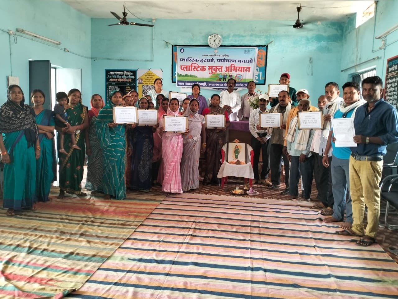 इसी क्रम में आज ग्राम पंचायत खैरवाही में सिंगल यूज प्लास्टिक मुक्त ग्राम पंचायत बनाने हेतु जनजागरूकता बैठक आयोजित की गई। बैठक में सिंगल यूज प्लास्टिक के दुष्प्रभावों पर विस्तार से चर्चा की गई तथा इसके पूर्ण प्रतिबंध के लिए उपस्थित ग्रामीणों को शपथ दिलाई गई।