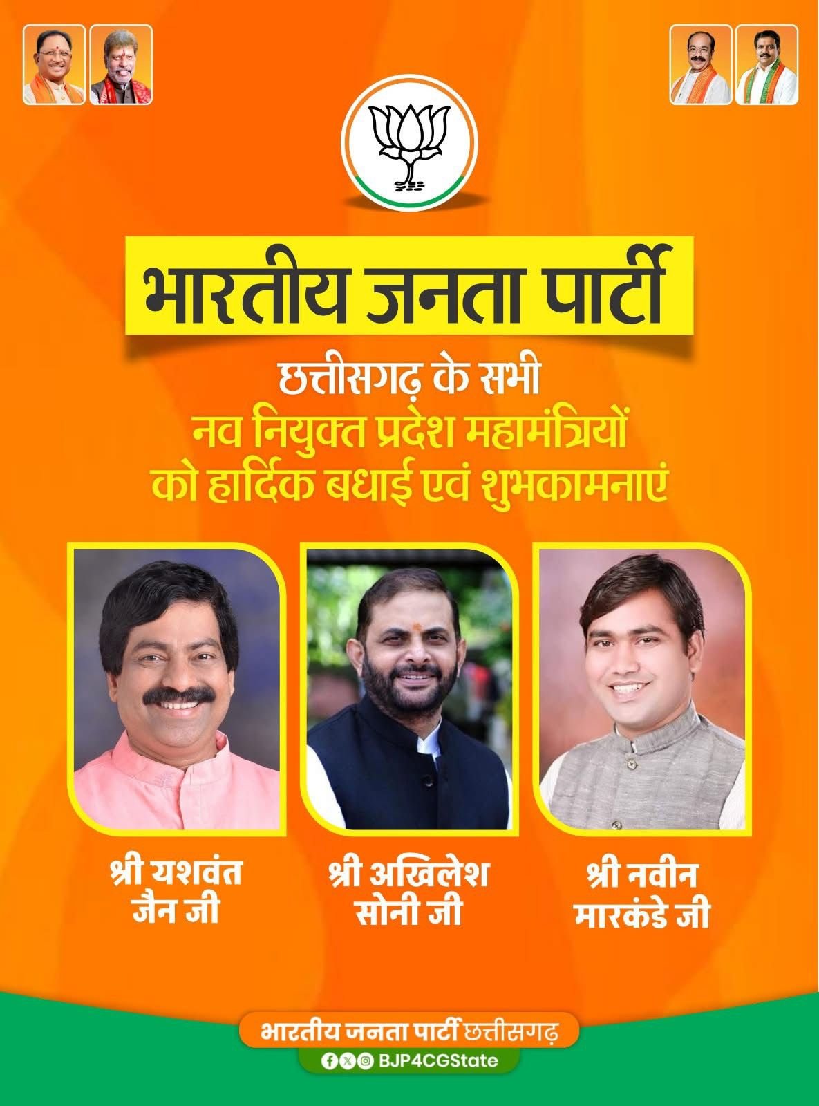 यशवंत जैन इससे पहले भी भाजपा में कई अहम पदों की जिम्मेदारी संभाल चुके हैं। वह भाजपा युवा मोर्चा के प्रदेश अध्यक्ष रहे, राष्ट्रीय बाल संरक्षण आयोग के सदस्य, छत्तीसगढ़ बाल संरक्षण आयोग के अध्यक्ष सहित कई बड़ी जिममेदारियां संभाल चुके हैं। यशवंत अनेक विधानसभा और लोकसभा चुनावों में कई सीटों के प्रभारी के रूप में कार्य कर चुके हैं।